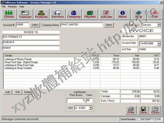 • Hillstone Invoice Manager v2.1.04 英文正式版(發票、賬單、賬戶管理軟體)